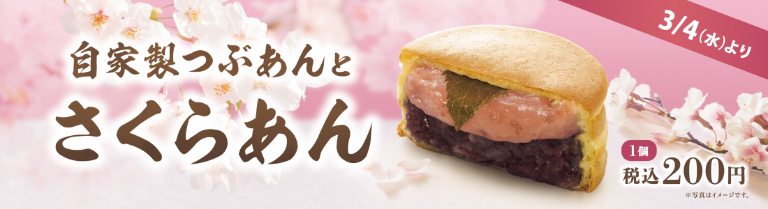 紫あんでは毎月季節の限定商品を販売しております。 今月は、自家製つぶあんに淡いピンクの桜あんを合わせた季節限定の大判焼を販売いたします。桜の葉がほのかに香り、上品な塩味が広がる“さくらあん”は、甘さ控えめに仕上げた自家製つぶあんの旨みをより一層引き立てます。なめらかな“さくらあん”と、粒感を残した“自家製つぶあん”が重なり合い、二つのあんが織りなす調和のとれた味わいをお楽しみいただけます。おやつや小腹満たしだけでなく、親しい方への手土産にも最適な、春を感じていただける一品です。