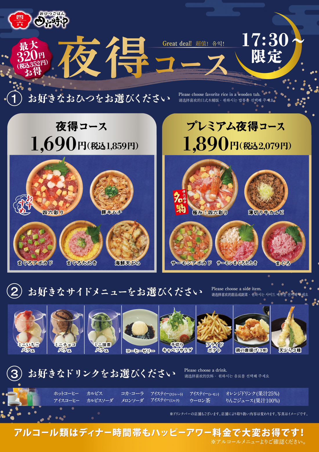 ※店舗により、ディナーメニューの実施曜日や時間帯など、実施状況が異なる場合がございます。予めご了承ください。