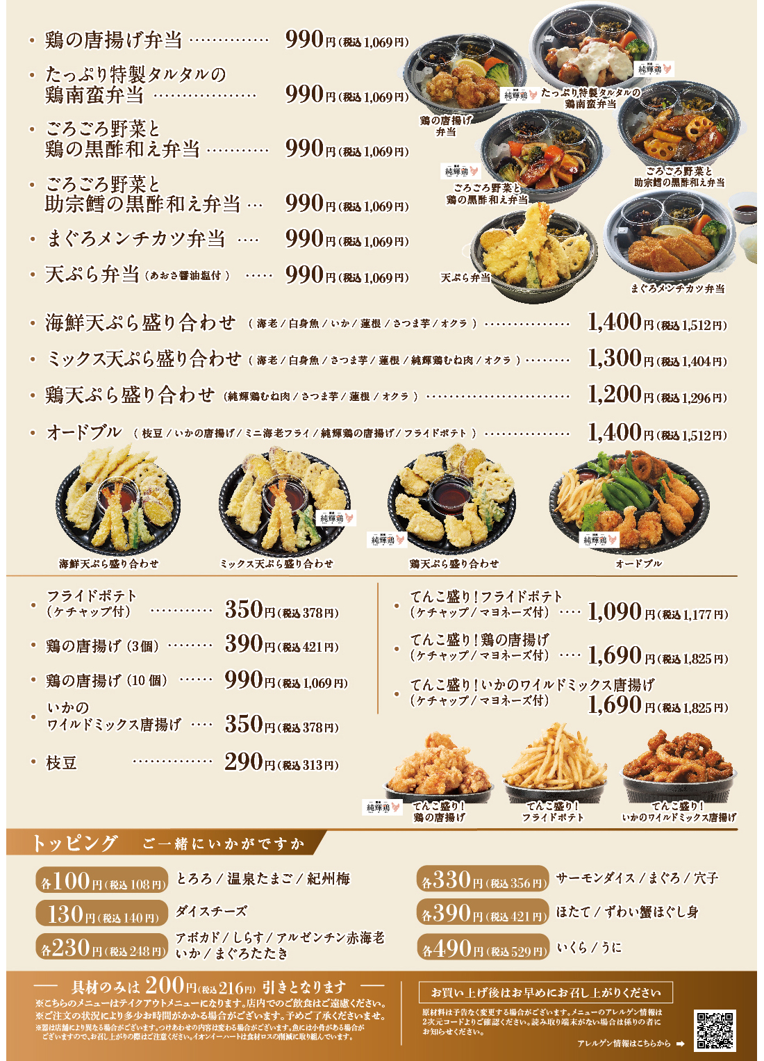 ※メニューのエネルギー・食塩相当量・アレルゲンについては、店内スタッフにご確認頂くか、下記アレルゲン情報検索サイトでご確認ください。